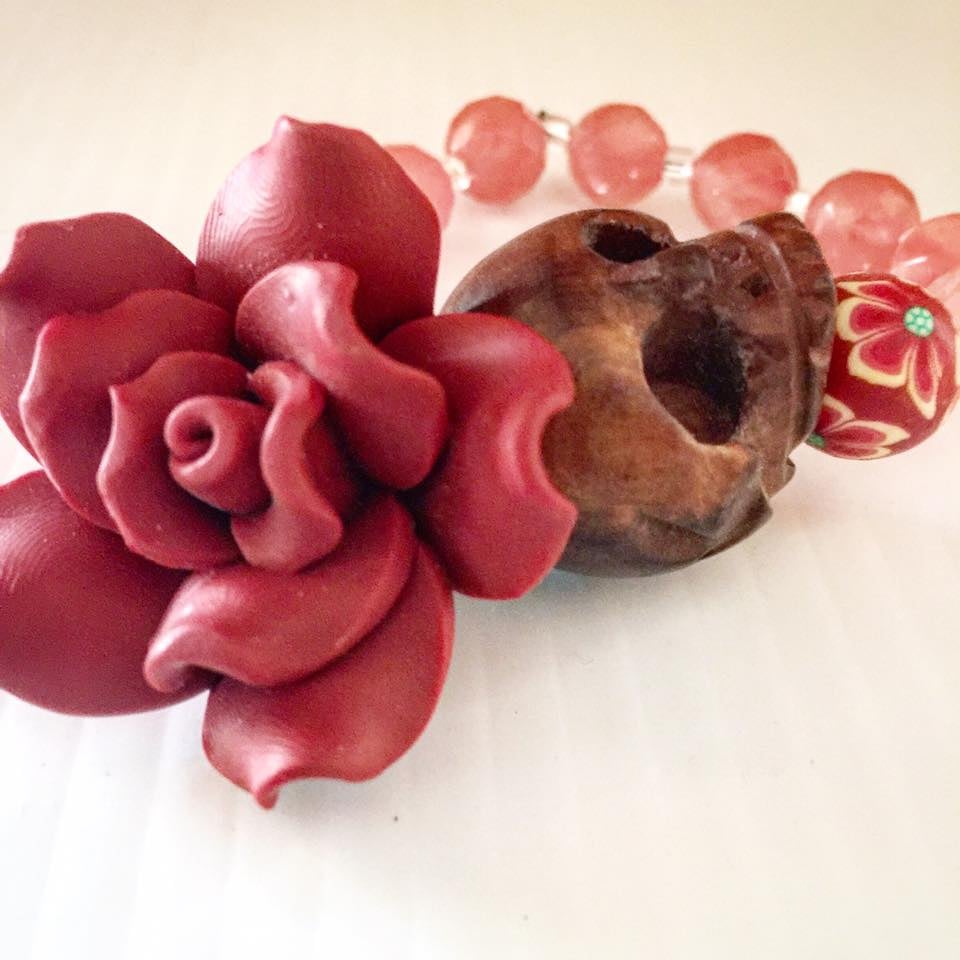 Dia De Los Muertos~Wood Carved Skull with Cherry Quartz