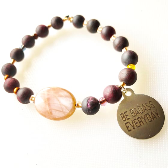 BE Badass Everyday/Peach faceted Moonstone and Frosted Matte Garnet
