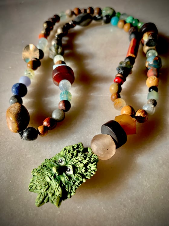 Sacred Heart Day of Dead Dalmatian Jasper and agate necklace